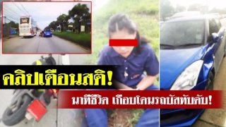นาทีชีวิต! เก๋งสวีฟท์ชนท้าย'จจย.นักเรียน หวิดรถบัสเหยียบดับ!