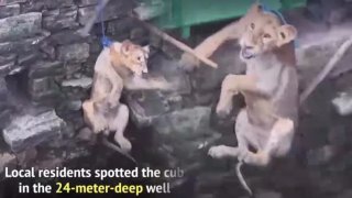 สิงโตวัย2 ขวบพลัดตกบ่อลึก 24เมตร ชาวบ้านอินเดีย ผูกเชือกดึงมันขึ้นมาได้ อย่างหวุดหวิด