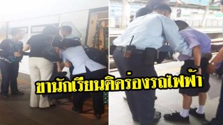 รปภ.ไหวพริบดี กดปุ่มหยุดรถได้ทัน ช่วยเด็ก น.ร.ขาติดร่องรถไฟฟ้า ขณะก้าวลงจากรถ