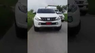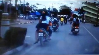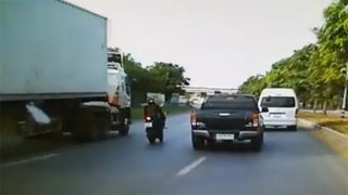 น่าเกลียดมาก กระบะชนมอไซค์จนล้ม ทั้งๆที่มีรถบรรทุกวิ่งตาม แต่เร่งเครื่องหนีเฉยเลย