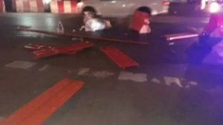 หล่นอีกแล้ว!!! โครงเหล็กนั่งร้าน โครงการก่อสร้างรถไฟฟ้าสายสีน้ำเงิน หล่น!กลางแยกบางขุนนนท์