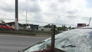 เตือนภัยผู้ใช้รถ ขับรถอยู่ดีๆขาตั้งร่มสนิมเขรอะเสียบรถกระจกแตกยับ!