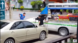 อากาศมันร้อนใจเย็นๆกันนะครับ ลงจากรถมาทะเลาะกันกลางถนน