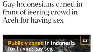 ดูกันชัดๆ การลงโทษเกย์ที่มีเพศสัมพันธ์กับเพศเดียวกัน บทลงโทษด้วยการเฆี่ยน ต่อหน้าสาธารณชนที่อินโดนีเซีย