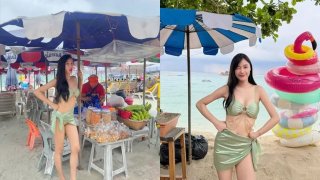 "เก๋ไก๋" แซ่บซ่ะไม่มี! ใส่บิกินี่ยืนซื้อยำ..ทำเอาหลายคนใจสั่น