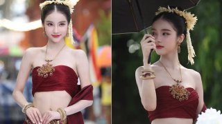 "โยชิ รินรดา" สวมชุดไทยในงาน "วันออกพรรษา"..ออร่ากระจาย หลายคนโฟกัสมาที่เธอ
