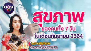สุขภาพของคนทั้ง 7 วัน... ในเดือนกันยายน 2564 เป็นยังไงบ้าง? พยากรณ์โดย...อ.ฮันนี่ แห่งดวงlive