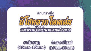 ลัคนาราศีใดมีโชคลาภโดเด่นและมีรายได้เข้ามาหลายช่องทางในช่วง ส.ค.-ก.ย 62