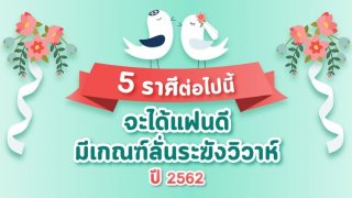 ดูดวงความรัก 5 ราศีต่อไปนี้ จะได้แฟนดี มีเกณฑ์ลั่นระฆังวิวาห์ ปี 2562